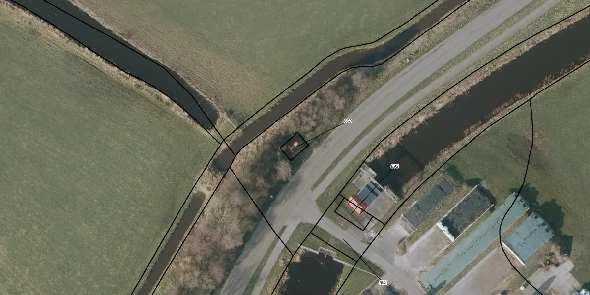 Het perceel waarop het adres ligt is ODB04-B-608. De afkorting 'ODB04' staat voor kadastrale gemeente Oldeboorn. Het perceel is 45 m² groot. Dat is kleiner dan de gemiddelde perceeloppervlakte in Oldeboorn, dat op 1,3 ha ligt. Het kleinste perceel in de kadastrale gemeente is 1 m² groot. De grootste perceeloppervlakte is 39,7 ha. Dit is het enige adres dat aanwezig is op het perceel. De huidige grenzen van het perceel zijn digitaal in de Basisregistratie Kadaster (BRK) geregistreerd op 15-01-1998.