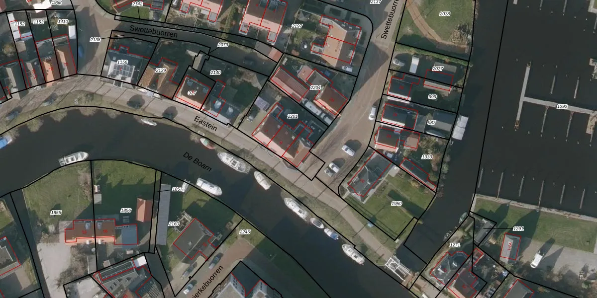 Het perceel waarop het adres ligt is ODB04-E-2201. De afkorting 'ODB04' staat voor kadastrale gemeente Oldeboorn. Het perceel is 502 m² groot. Dat is kleiner dan de gemiddelde perceeloppervlakte in Oldeboorn, dat op 1,3 ha ligt. Het kleinste perceel in de kadastrale gemeente is 1 m² groot. De grootste perceeloppervlakte is 39,7 ha. Er zijn 3 adressen aanwezig op het perceel. De huidige grenzen van het perceel zijn digitaal in de Basisregistratie Kadaster (BRK) geregistreerd op 25-05-2018.