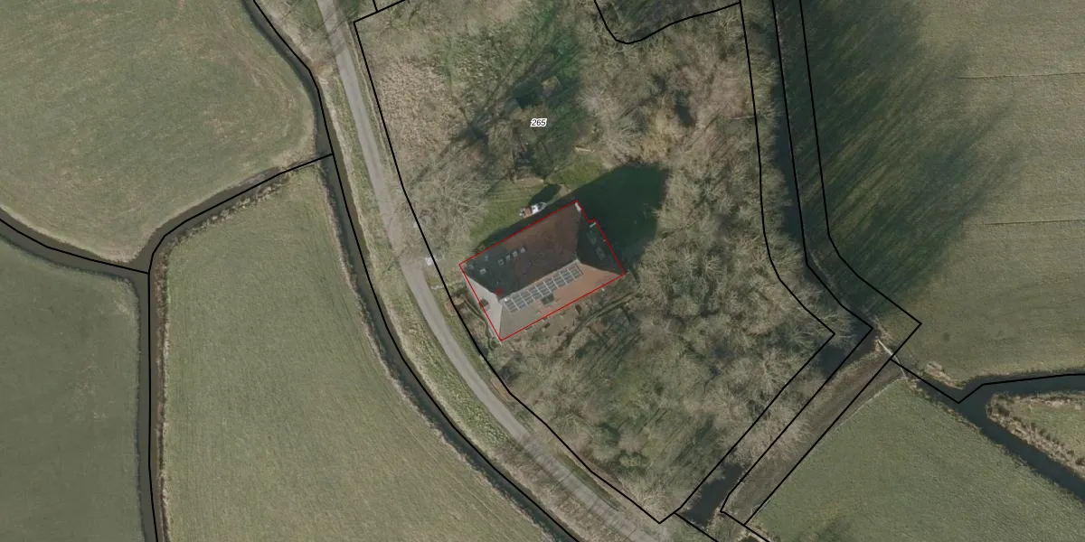 Het adres is gelegen op perceel 265 in de sectie F en de kadastrale gemeente Oldeboorn. De kadastrale aanduiding is aldus ODB04-F-265. Het perceel is kleiner dan gemiddeld in Oldeboorn. Het perceel is 5530 m² groot, terwijl het gemiddelde ligt op 1,3 ha. Het grootste perceel in de kadastrale gemeente is 39,7 ha. Het kleinste perceel heeft een oppervlakte van 1 m². Op het perceel bevinden zich geen andere adressen. In de Basisregistratie Kadaster (BRK) werden de grenzen van het perceel geregistreerd op 15-01-1998.