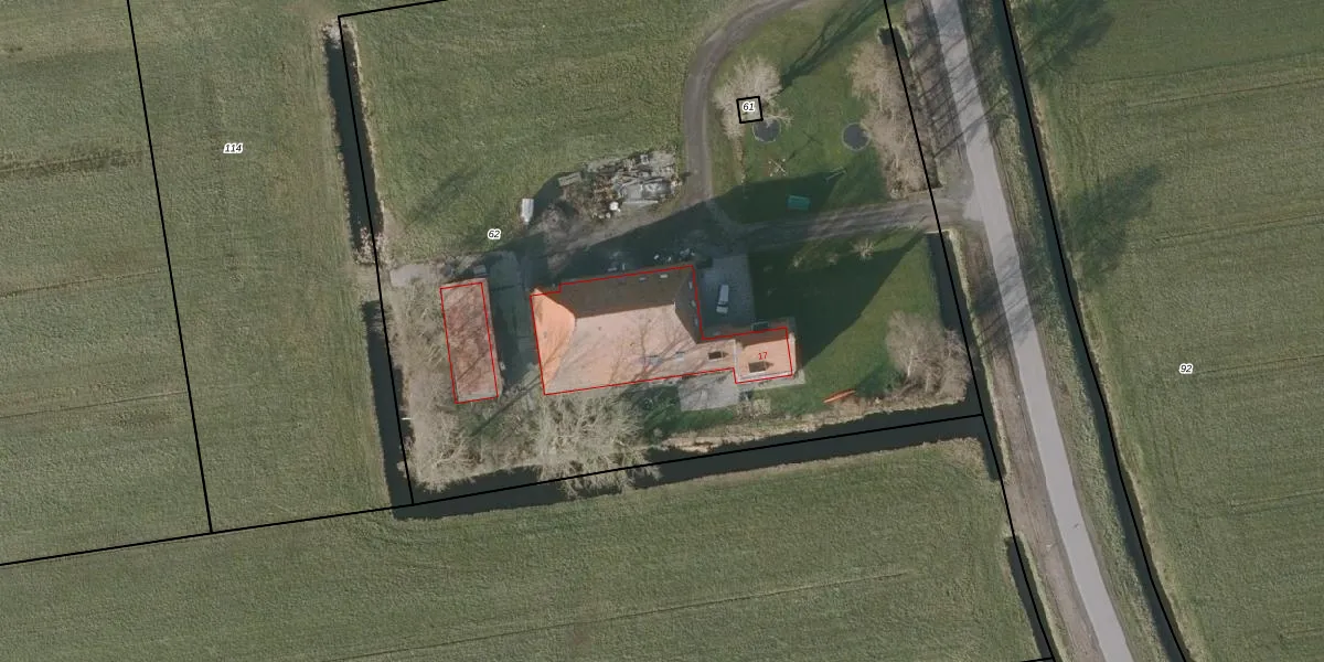 Het adres is gelegen op perceel 62 in de sectie G en de kadastrale gemeente Oldeboorn. De kadastrale aanduiding is aldus ODB04-G-62. Het perceel is kleiner dan gemiddeld in Oldeboorn. Het perceel is 6250 m² groot, terwijl het gemiddelde ligt op 1,3 ha. De grootste perceeloppervlakte in de kadastrale gemeente is 39,7 ha. De kleinste oppervlakte bedraagt 1 m². Dit is het enige adres dat aanwezig is op het perceel. De laatste wijziging in het de Basisregistratie Kadaster (BRK) was op 24-10-2011.