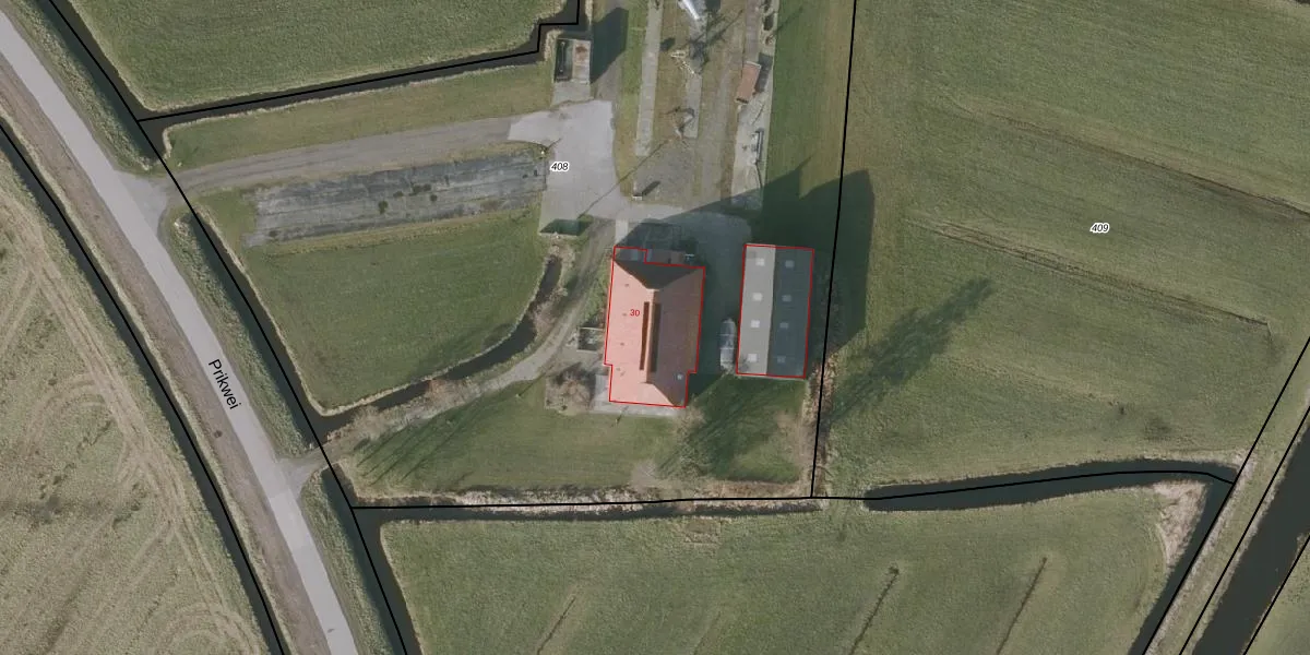 Prikwei 30 is gelegen op kadastraal perceel ODB04G408. Deze kadastrale aanduiding is uniek en wordt gebruikt door het Kadaster om eigendomsrechten en andere zakelijke rechten vast te leggen. Het perceel maakt onderdeel uit van de kadastrale gemeente Oldeboorn.