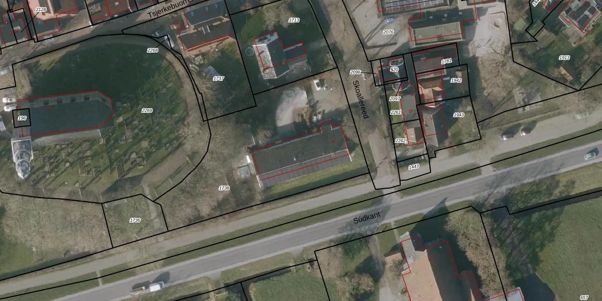 Het perceel waarop Skoallereed 2 staat heeft een oppervlakte van 1957 m². Dit is een zeer groot perceel. De perceeloppervlakte wordt geregistreerd door het Kadaster. Gedetailleerde informatie over de maten van dit perceel kunt u vinden in het rapport Kadastrale kaart met maatvoering van Skoallereed 2.