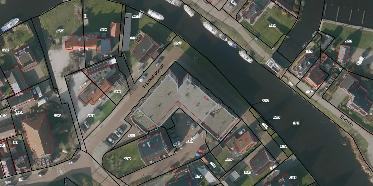 Het perceel waarop het adres ligt is ODB04-E-2241. De afkorting 'ODB04' staat voor kadastrale gemeente Oldeboorn. De gemiddelde perceelgrootte in Oldeboorn is 1,3 ha. Dit perceel is kleiner: de perceeloppervlakte bedraagt 1375 m². Het grootste perceel in de kadastrale gemeente is 39,7 ha. Het kleinste perceel heeft een oppervlakte van 1 m². Op het perceel liggen in totaal 20 adressen. In de Basisregistratie Kadaster (BRK) werden de grenzen van het perceel geregistreerd op 09-06-2022.