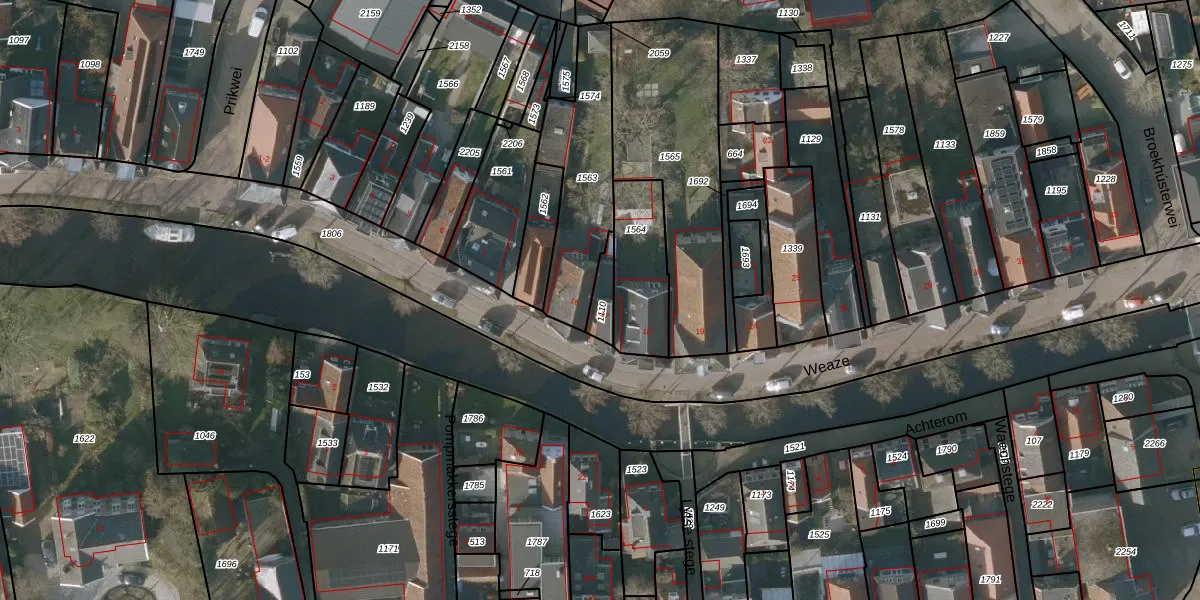 Het perceel waarop Weaze 17 staat heeft een oppervlakte van 54 m². Dit is een klein perceel. De perceeloppervlakte wordt geregistreerd door het Kadaster. Gedetailleerde informatie over de maten van dit perceel kunt u vinden in het rapport Kadastrale kaart met maatvoering van Weaze 17.