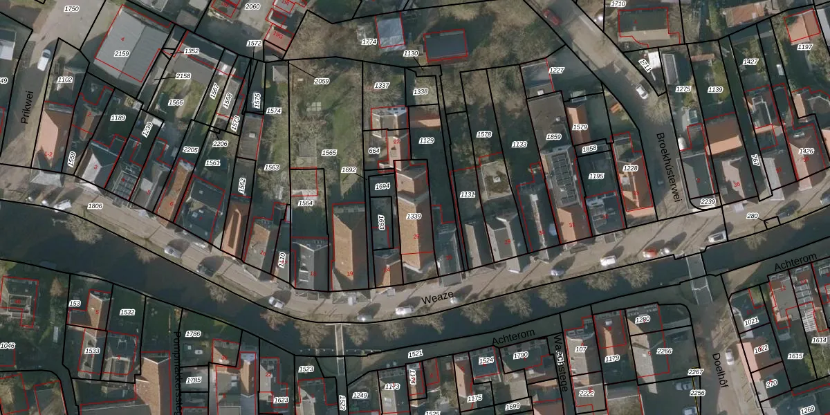 Het perceel waarop Weaze 25 staat heeft een oppervlakte van 238 m². Dit is een middelgroot perceel. De perceeloppervlakte wordt geregistreerd door het Kadaster. Gedetailleerde informatie over de maten van dit perceel kunt u vinden in het rapport Kadastrale kaart met maatvoering van Weaze 25.