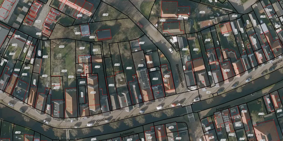 Het perceel waarop Weaze 31 staat heeft een oppervlakte van 306 m². Dit is een groot perceel. De perceeloppervlakte wordt geregistreerd door het Kadaster. Gedetailleerde informatie over de maten van dit perceel kunt u vinden in het rapport Kadastrale kaart met maatvoering van Weaze 31.