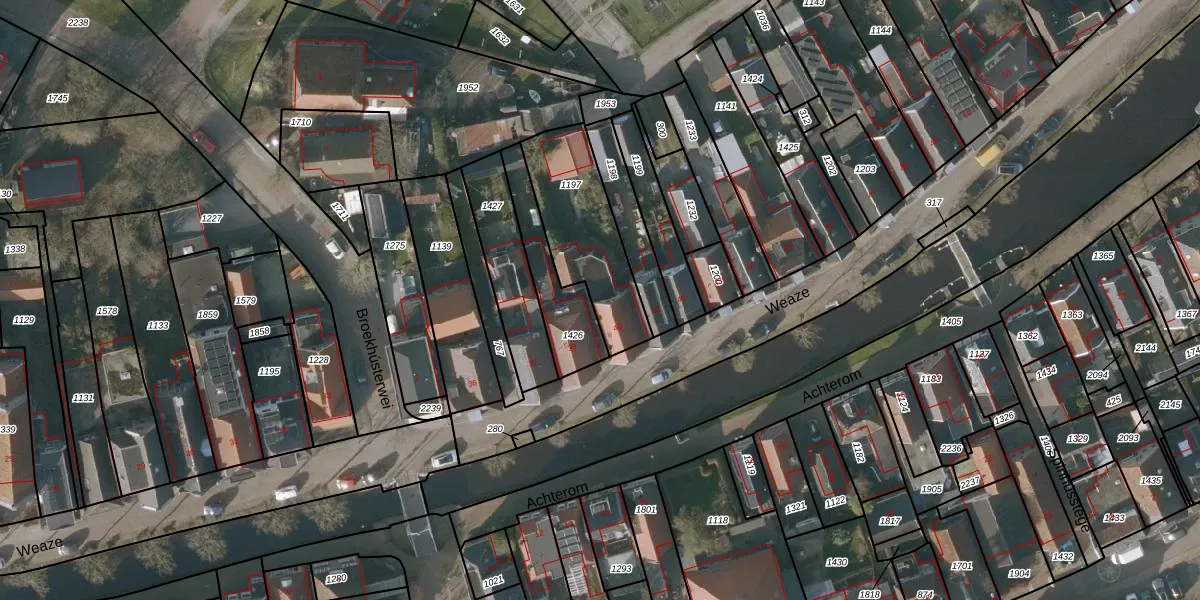 Het perceel waarop Weaze 40 staat heeft een oppervlakte van 399 m². Dit is een groot perceel. De perceeloppervlakte wordt geregistreerd door het Kadaster. Gedetailleerde informatie over de maten van dit perceel kunt u vinden in het rapport Kadastrale kaart met maatvoering van Weaze 40.