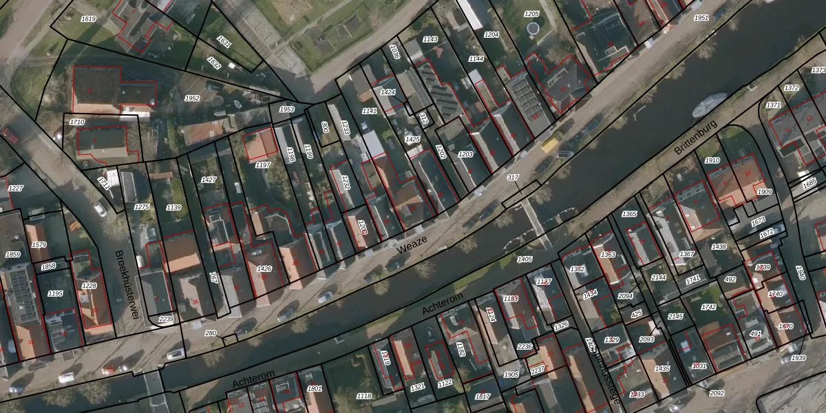 Het perceel waarop Weaze 45 staat heeft een oppervlakte van 318 m². Dit is een groot perceel. De perceeloppervlakte wordt geregistreerd door het Kadaster. Gedetailleerde informatie over de maten van dit perceel kunt u vinden in het rapport Kadastrale kaart met maatvoering van Weaze 45.