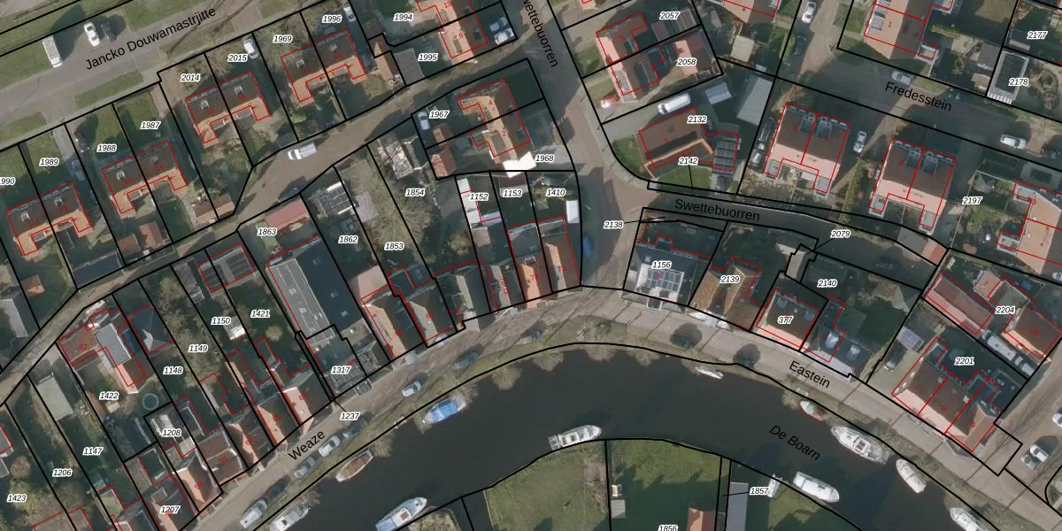 Het perceel waarop het adres ligt is ODB04-E-1153. De afkorting 'ODB04' staat voor kadastrale gemeente Oldeboorn. De gemiddelde perceelgrootte in Oldeboorn is 1,3 ha. Dit perceel is kleiner: de perceeloppervlakte bedraagt 147 m². Het kleinste perceel in de kadastrale gemeente is 1 m² groot. De grootste perceeloppervlakte is 39,7 ha. Er zijn geen andere adressen aanwezig op het perceel. In de Basisregistratie Kadaster (BRK) werden de grenzen van het perceel geregistreerd op 14-09-2006.