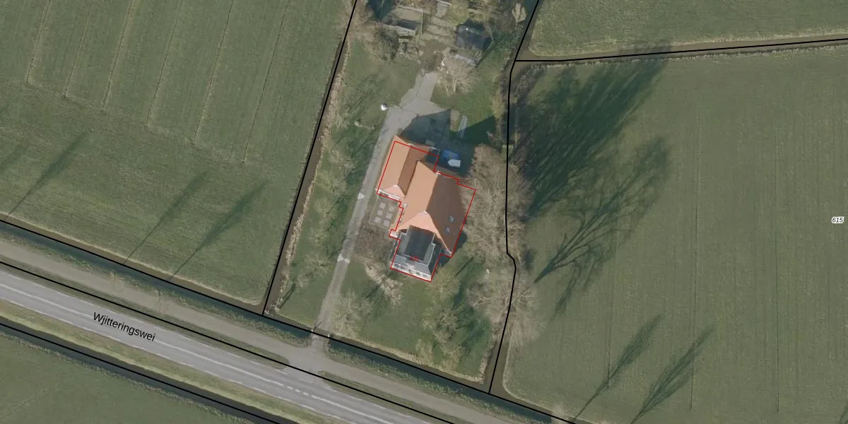 Het perceel waarop Wjitteringswei 130 staat heeft een oppervlakte van 1,1 ha. Dit is een zeer groot perceel. De perceeloppervlakte wordt geregistreerd door het Kadaster. Gedetailleerde informatie over de maten van dit perceel kunt u vinden in het rapport Kadastrale kaart met maatvoering van Wjitteringswei 130.