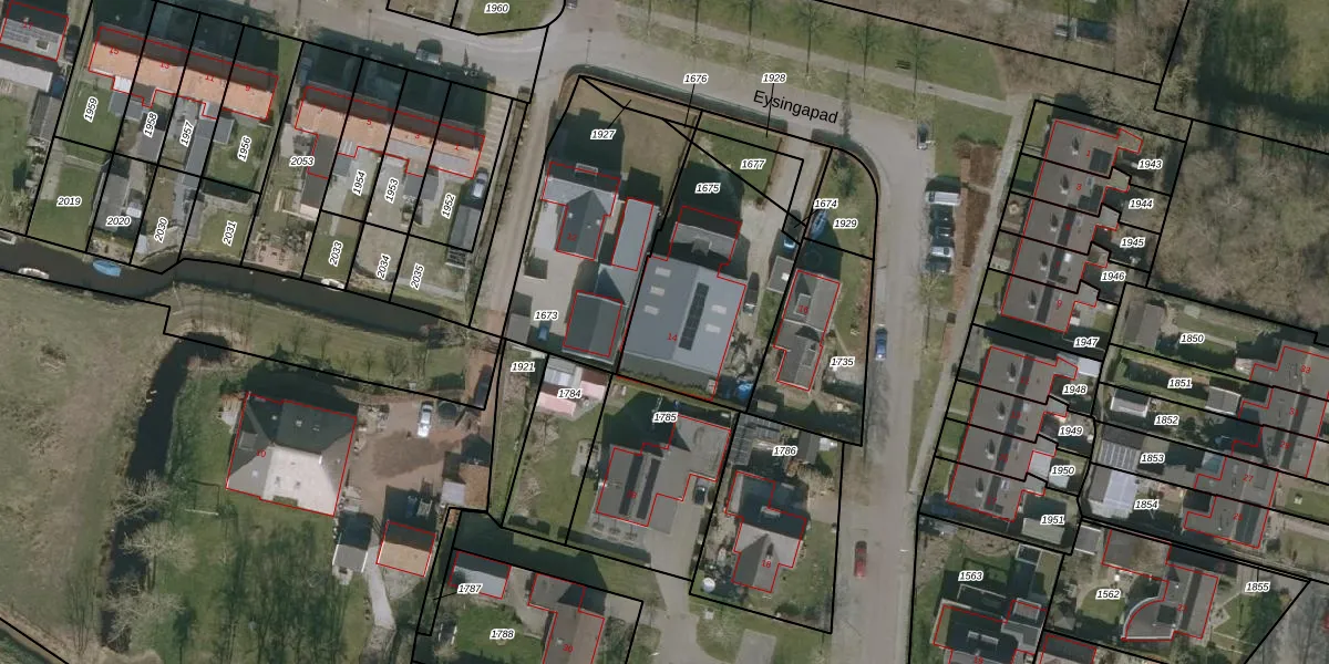 Gebruik de zoekbalk of klik op een perceel voor informatie over de adressen binnen dit perceel.