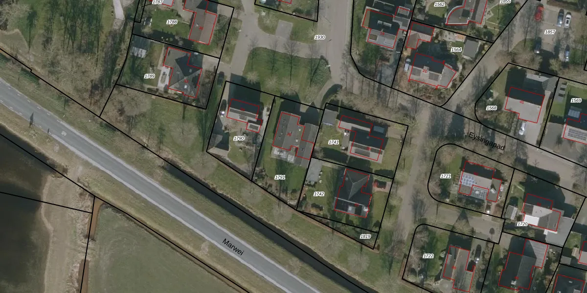 Het perceel waarop Eysingapad 36 staat heeft een oppervlakte van 575 m². Dit is een groot perceel. De perceeloppervlakte wordt geregistreerd door het Kadaster. Gedetailleerde informatie over de maten van dit perceel kunt u vinden in het rapport Kadastrale kaart met maatvoering van Eysingapad 36.