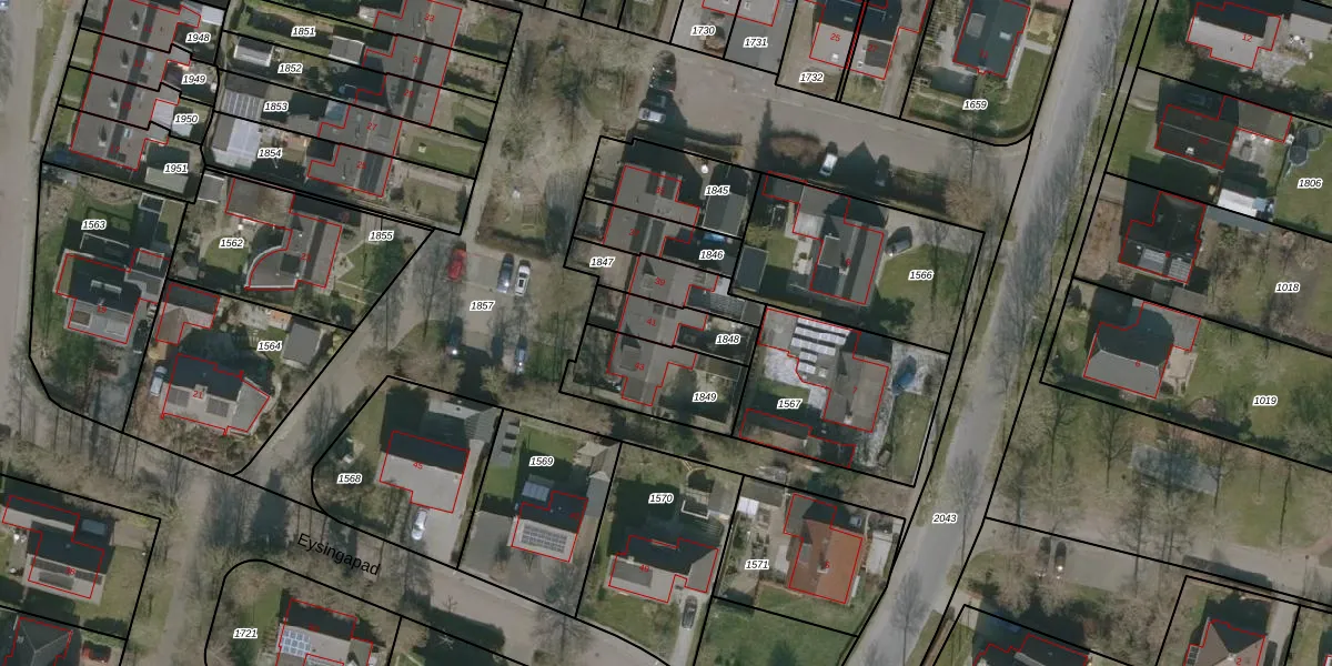 Het perceel waarop Eysingapad 41 staat heeft een oppervlakte van 154 m². Dit is een middelgroot perceel. De perceeloppervlakte wordt geregistreerd door het Kadaster. Gedetailleerde informatie over de maten van dit perceel kunt u vinden in het rapport Kadastrale kaart met maatvoering van Eysingapad 41.
