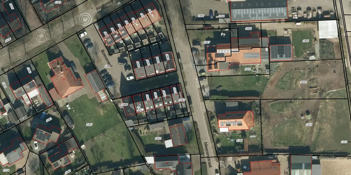 Het perceel waarop Boerenerf 12 staat heeft een oppervlakte van 84 m². Dit is een klein perceel. De perceeloppervlakte wordt geregistreerd door het Kadaster. Gedetailleerde informatie over de maten van dit perceel kunt u vinden in het rapport Kadastrale kaart met maatvoering van Boerenerf 12.