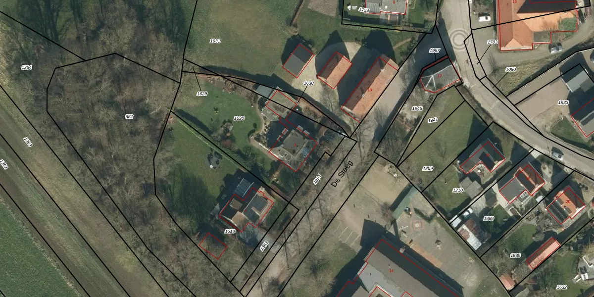 Het perceel waarop De Steeg 2 staat heeft een oppervlakte van 1290 m². Dit is een zeer groot perceel. De perceeloppervlakte wordt geregistreerd door het Kadaster. Gedetailleerde informatie over de maten van dit perceel kunt u vinden in het rapport Kadastrale kaart met maatvoering van De Steeg 2.