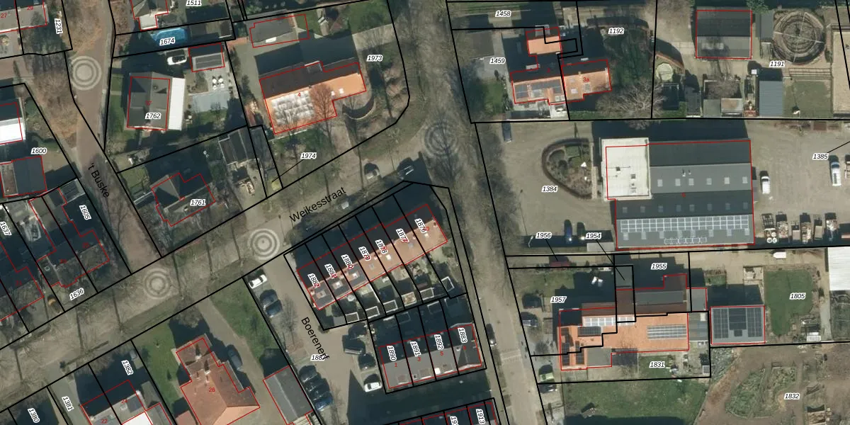 Gebruik de zoekbalk of klik op een perceel voor informatie over de adressen binnen dit perceel.
