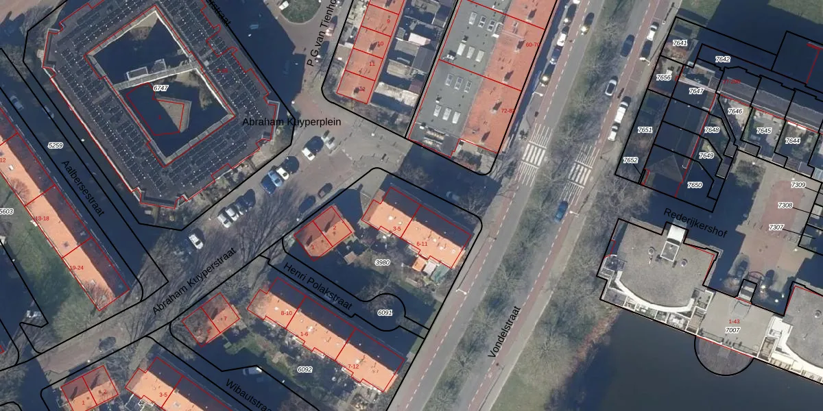 Het perceel waarop Abraham Kuyperplein 5 staat heeft een oppervlakte van 1065 m². Dit is een zeer groot perceel. De perceeloppervlakte wordt geregistreerd door het Kadaster. Gedetailleerde informatie over de maten van dit perceel kunt u vinden in het rapport Kadastrale kaart met maatvoering van Abraham Kuyperplein 5.
