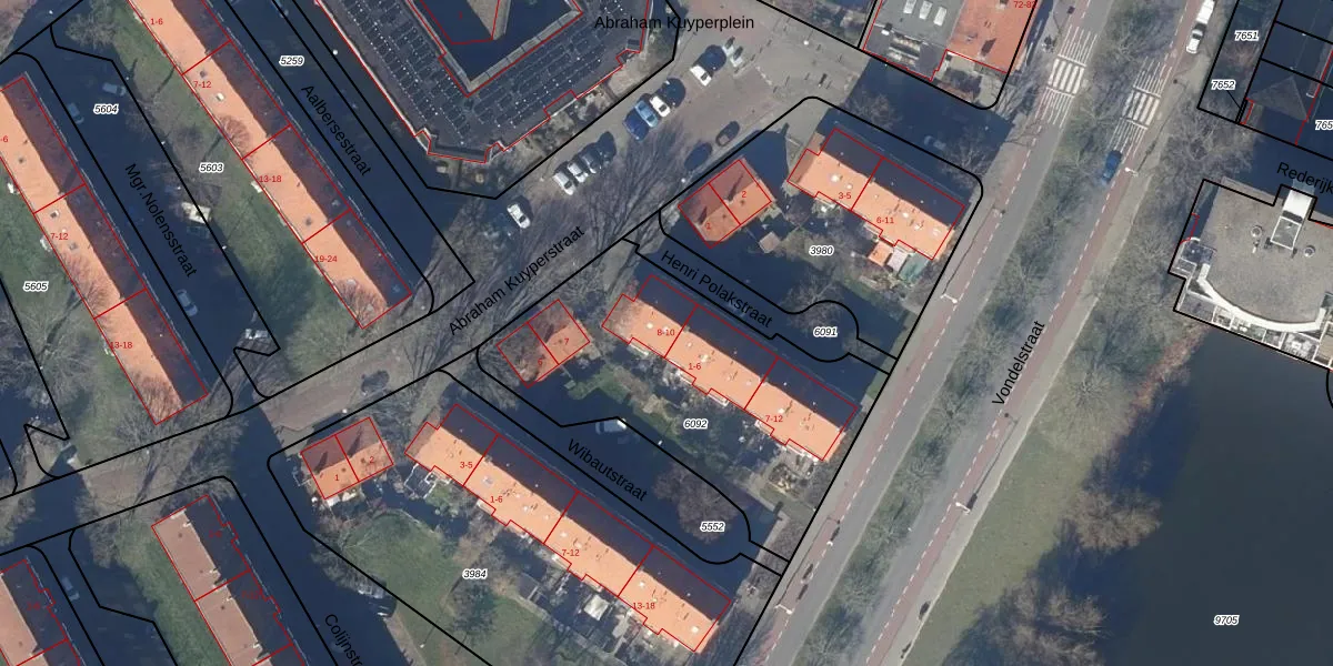 Het perceel waarop Abraham Kuyperstraat 8 staat heeft een oppervlakte van 1335 m². Dit is een zeer groot perceel. De perceeloppervlakte wordt geregistreerd door het Kadaster. Gedetailleerde informatie over de maten van dit perceel kunt u vinden in het rapport Kadastrale kaart met maatvoering van Abraham Kuyperstraat 8.