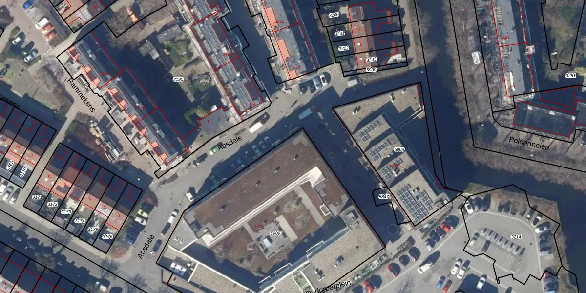 Het perceel waarop Absdale 12 staat heeft een oppervlakte van 2963 m². Dit is een zeer groot perceel. De perceeloppervlakte wordt geregistreerd door het Kadaster. Gedetailleerde informatie over de maten van dit perceel kunt u vinden in het rapport Kadastrale kaart met maatvoering van Absdale 12.