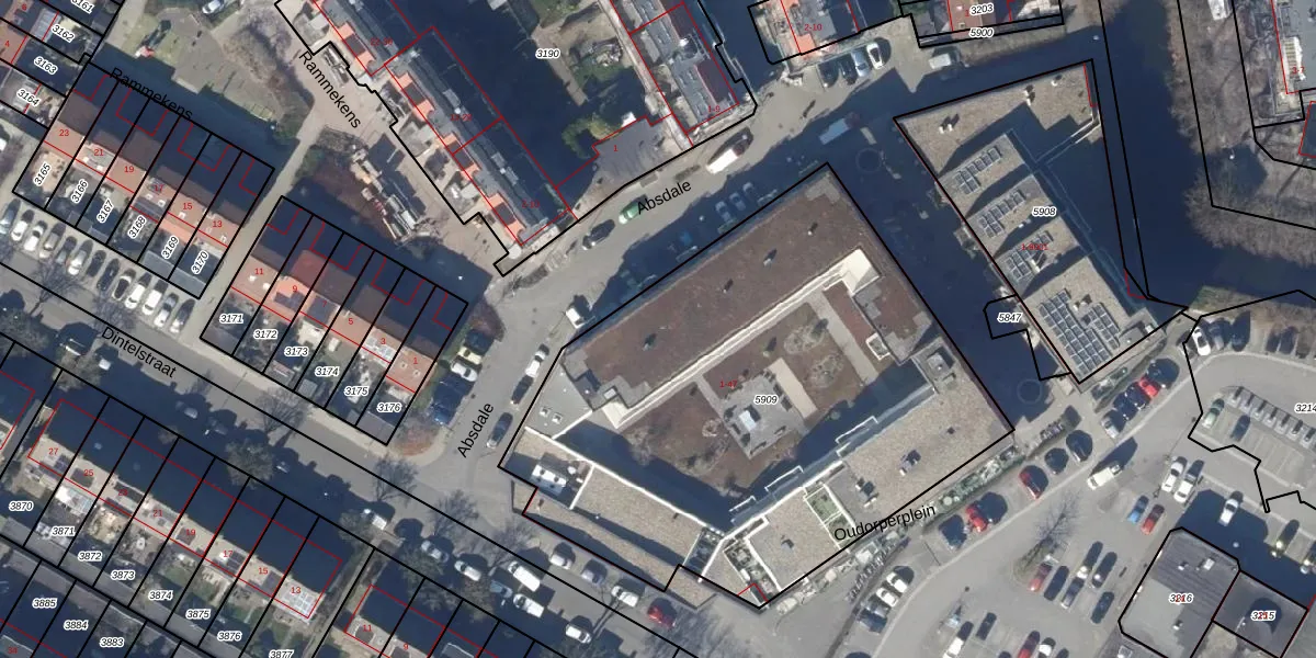 Absdale 18 is gelegen op kadastraal perceel ODP02A5909. Deze kadastrale aanduiding is uniek en wordt gebruikt door het Kadaster om eigendomsrechten en andere zakelijke rechten vast te leggen. Het perceel maakt onderdeel uit van de kadastrale gemeente Oudorp.