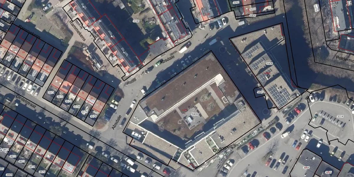 Absdale 20 is gelegen op kadastraal perceel ODP02A5909. Deze kadastrale aanduiding is uniek en wordt gebruikt door het Kadaster om eigendomsrechten en andere zakelijke rechten vast te leggen. Het perceel maakt onderdeel uit van de kadastrale gemeente Oudorp.