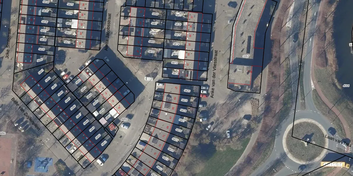 Gebruik de zoekbalk of klik op een perceel voor informatie over de adressen binnen dit perceel.