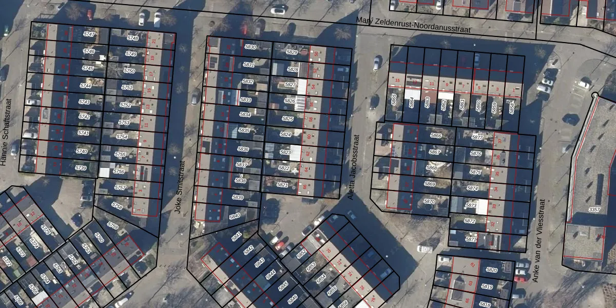 Gebruik de zoekbalk of klik op een perceel voor informatie over de adressen binnen dit perceel.