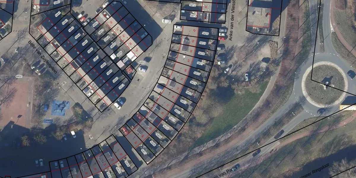 Gebruik de zoekbalk of klik op een perceel voor informatie over de adressen binnen dit perceel.