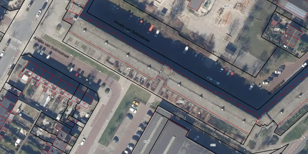 Het perceel waarop Amalia van Solmsstraat 127 staat heeft een oppervlakte van 6869 m². Dit is een zeer groot perceel. De perceeloppervlakte wordt geregistreerd door het Kadaster. Gedetailleerde informatie over de maten van dit perceel kunt u vinden in het rapport Kadastrale kaart met maatvoering van Amalia van Solmsstraat 127.
