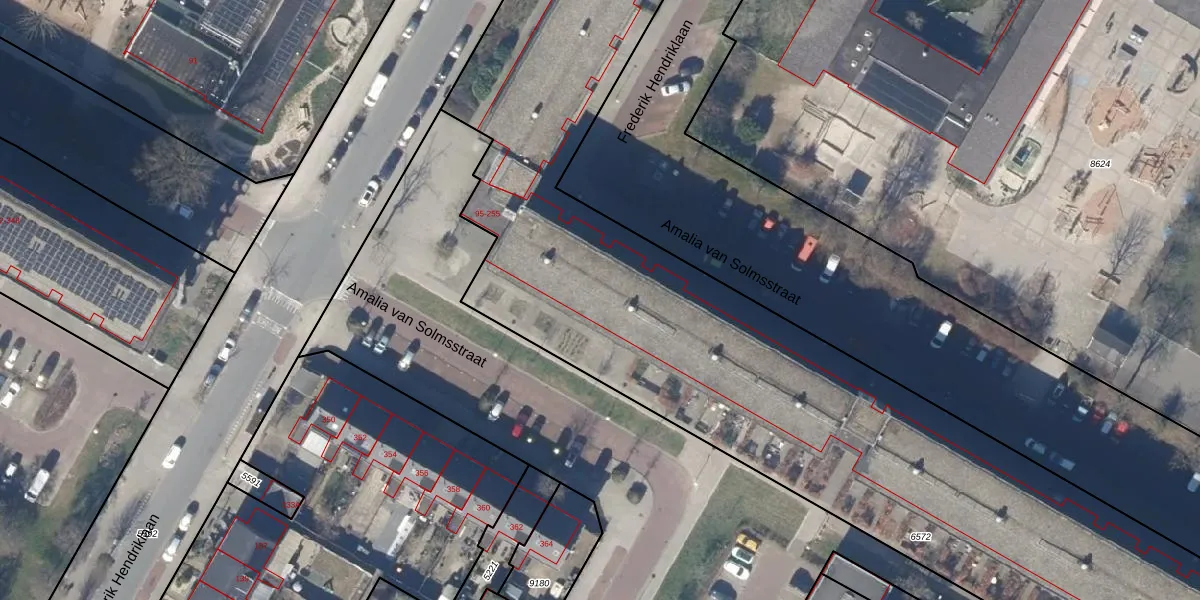 Het perceel waarop Amalia van Solmsstraat 165 staat heeft een oppervlakte van 6869 m². Dit is een zeer groot perceel. De perceeloppervlakte wordt geregistreerd door het Kadaster. Gedetailleerde informatie over de maten van dit perceel kunt u vinden in het rapport Kadastrale kaart met maatvoering van Amalia van Solmsstraat 165.