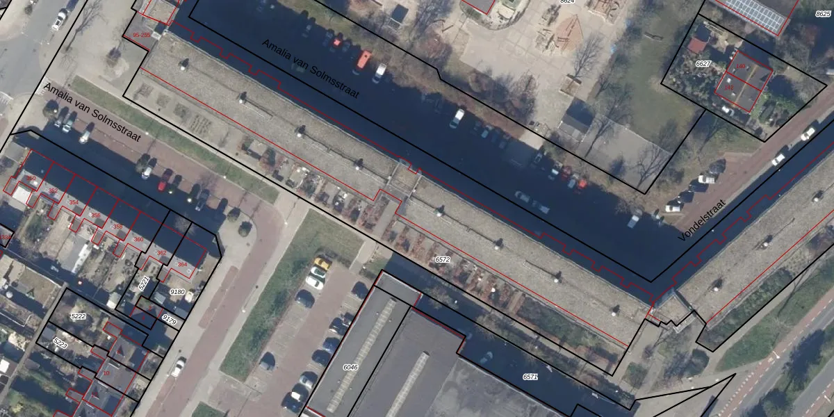 Het perceel waarop Amalia van Solmsstraat 177 staat heeft een oppervlakte van 6869 m². Dit is een zeer groot perceel. De perceeloppervlakte wordt geregistreerd door het Kadaster. Gedetailleerde informatie over de maten van dit perceel kunt u vinden in het rapport Kadastrale kaart met maatvoering van Amalia van Solmsstraat 177.