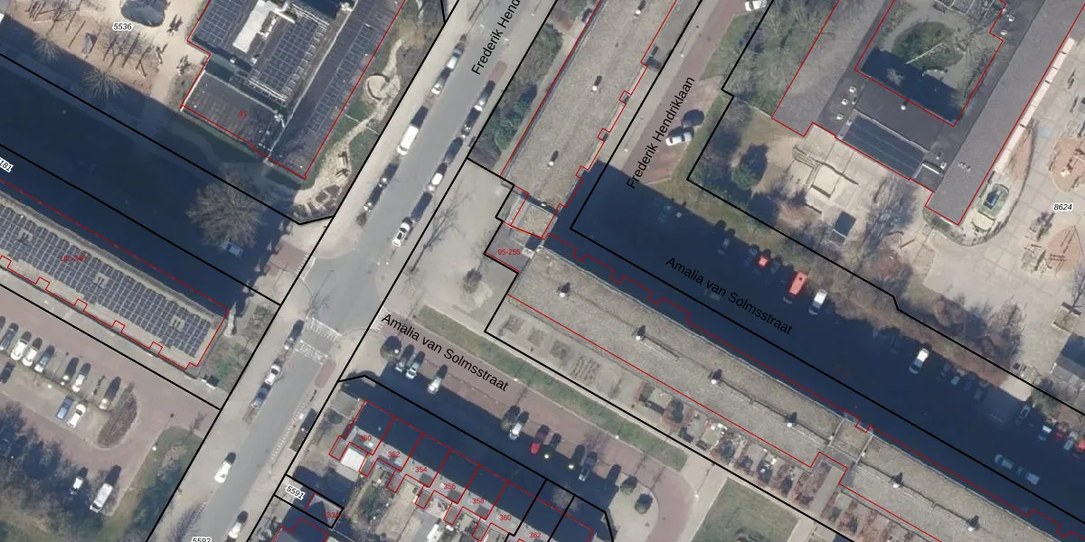 Het perceel waarop Amalia van Solmsstraat 193 staat heeft een oppervlakte van 6869 m². Dit is een zeer groot perceel. De perceeloppervlakte wordt geregistreerd door het Kadaster. Gedetailleerde informatie over de maten van dit perceel kunt u vinden in het rapport Kadastrale kaart met maatvoering van Amalia van Solmsstraat 193.