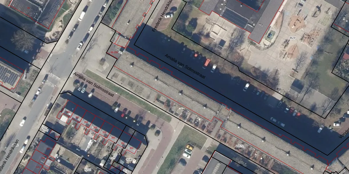 Het perceel waarop Amalia van Solmsstraat 201 staat heeft een oppervlakte van 6869 m². Dit is een zeer groot perceel. De perceeloppervlakte wordt geregistreerd door het Kadaster. Gedetailleerde informatie over de maten van dit perceel kunt u vinden in het rapport Kadastrale kaart met maatvoering van Amalia van Solmsstraat 201.
