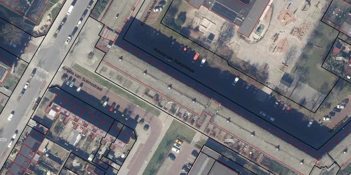 Het perceel waarop Amalia van Solmsstraat 203 staat heeft een oppervlakte van 6869 m². Dit is een zeer groot perceel. De perceeloppervlakte wordt geregistreerd door het Kadaster. Gedetailleerde informatie over de maten van dit perceel kunt u vinden in het rapport Kadastrale kaart met maatvoering van Amalia van Solmsstraat 203.