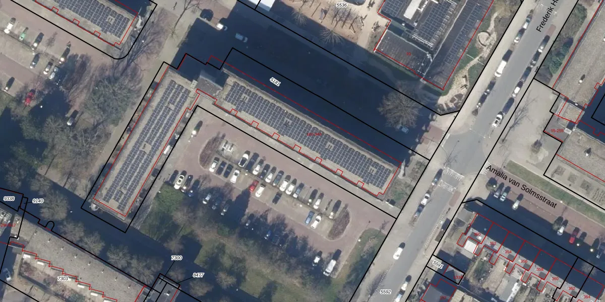 Het perceel waarop Amalia van Solmsstraat 218 staat heeft een oppervlakte van 2684 m². Dit is een zeer groot perceel. De perceeloppervlakte wordt geregistreerd door het Kadaster. Gedetailleerde informatie over de maten van dit perceel kunt u vinden in het rapport Kadastrale kaart met maatvoering van Amalia van Solmsstraat 218.