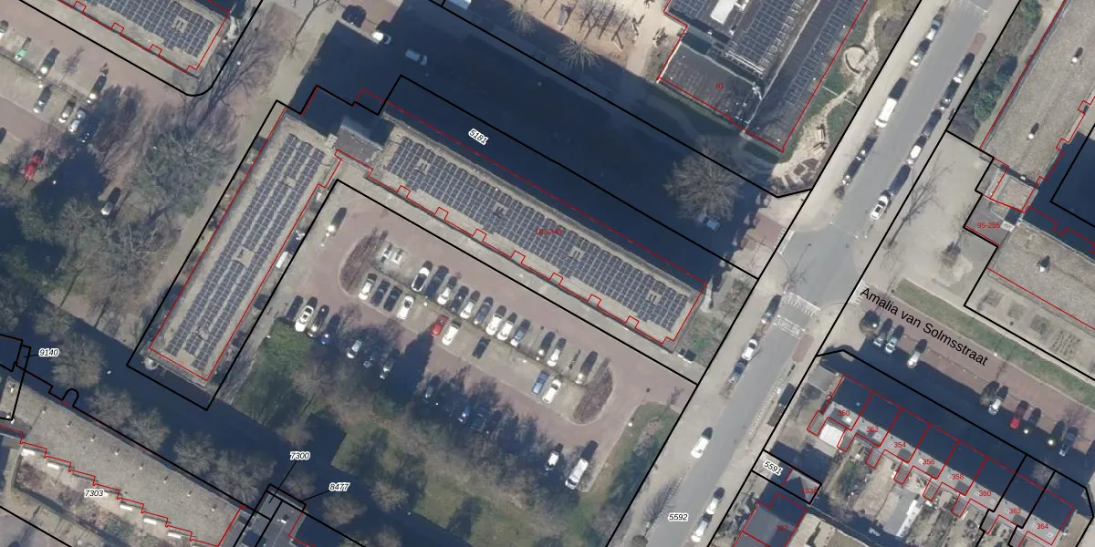 Het perceel waarop Amalia van Solmsstraat 220 staat heeft een oppervlakte van 2684 m². Dit is een zeer groot perceel. De perceeloppervlakte wordt geregistreerd door het Kadaster. Gedetailleerde informatie over de maten van dit perceel kunt u vinden in het rapport Kadastrale kaart met maatvoering van Amalia van Solmsstraat 220.