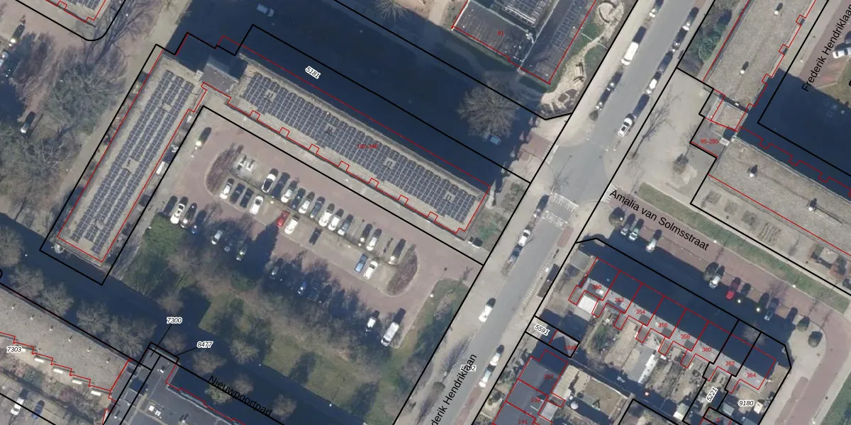 Het perceel waarop Amalia van Solmsstraat 228 staat heeft een oppervlakte van 2684 m². Dit is een zeer groot perceel. De perceeloppervlakte wordt geregistreerd door het Kadaster. Gedetailleerde informatie over de maten van dit perceel kunt u vinden in het rapport Kadastrale kaart met maatvoering van Amalia van Solmsstraat 228.