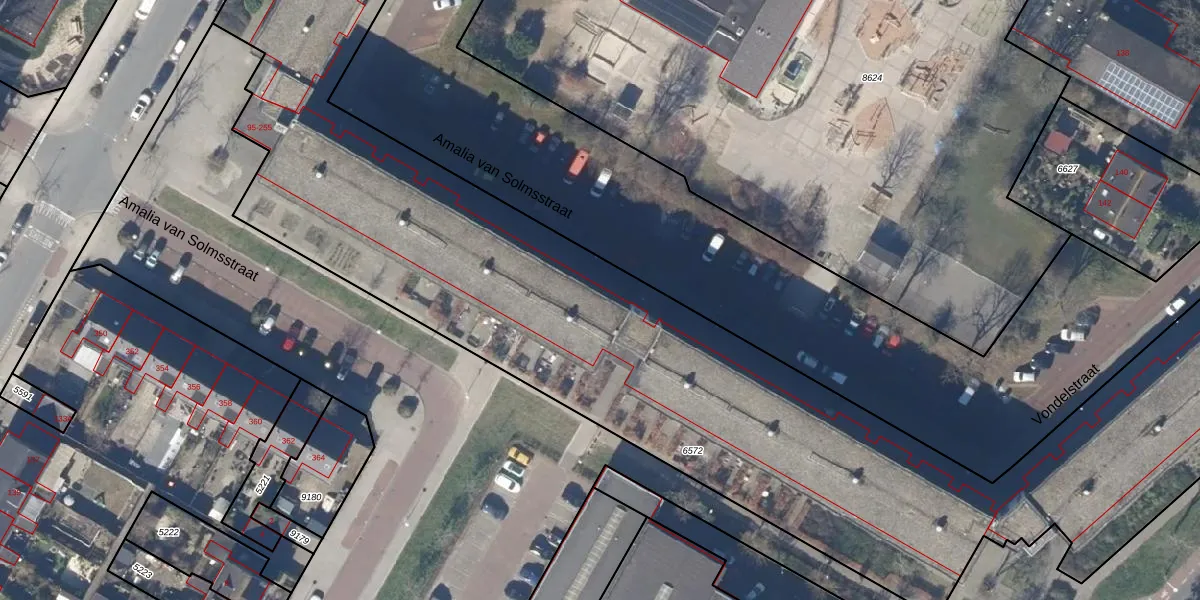 Het perceel waarop Amalia van Solmsstraat 239 staat heeft een oppervlakte van 6869 m². Dit is een zeer groot perceel. De perceeloppervlakte wordt geregistreerd door het Kadaster. Gedetailleerde informatie over de maten van dit perceel kunt u vinden in het rapport Kadastrale kaart met maatvoering van Amalia van Solmsstraat 239.