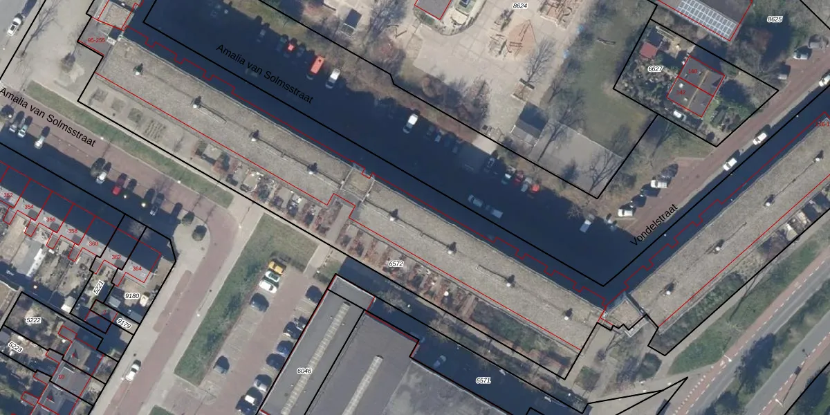 Het perceel waarop Amalia van Solmsstraat 243 staat heeft een oppervlakte van 6869 m². Dit is een zeer groot perceel. De perceeloppervlakte wordt geregistreerd door het Kadaster. Gedetailleerde informatie over de maten van dit perceel kunt u vinden in het rapport Kadastrale kaart met maatvoering van Amalia van Solmsstraat 243.