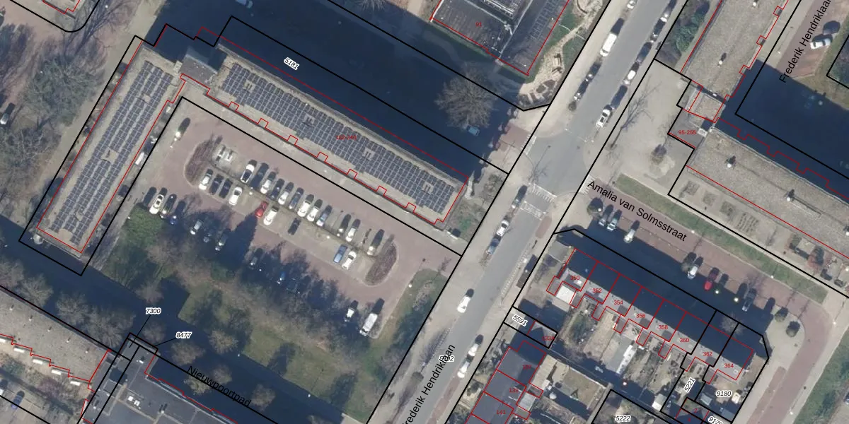 Het perceel waarop Amalia van Solmsstraat 260 staat heeft een oppervlakte van 2684 m². Dit is een zeer groot perceel. De perceeloppervlakte wordt geregistreerd door het Kadaster. Gedetailleerde informatie over de maten van dit perceel kunt u vinden in het rapport Kadastrale kaart met maatvoering van Amalia van Solmsstraat 260.