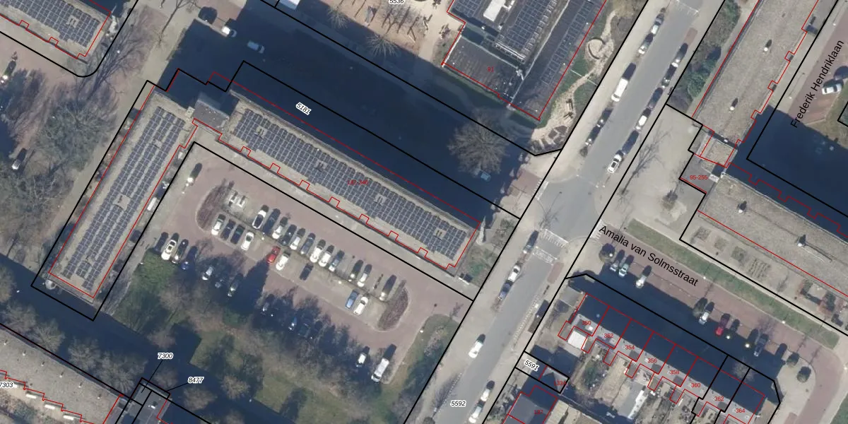Het perceel waarop Amalia van Solmsstraat 330 staat heeft een oppervlakte van 2684 m². Dit is een zeer groot perceel. De perceeloppervlakte wordt geregistreerd door het Kadaster. Gedetailleerde informatie over de maten van dit perceel kunt u vinden in het rapport Kadastrale kaart met maatvoering van Amalia van Solmsstraat 330.