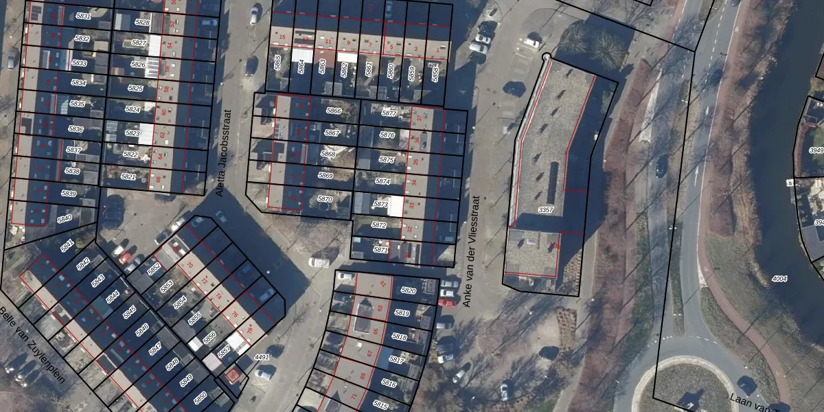 Gebruik de zoekbalk of klik op een perceel voor informatie over de adressen binnen dit perceel.
