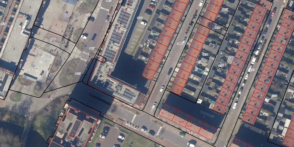 Het perceel waarop Anna Bijnsstraat 30 staat heeft een oppervlakte van 3893 m². Dit is een zeer groot perceel. De perceeloppervlakte wordt geregistreerd door het Kadaster. Gedetailleerde informatie over de maten van dit perceel kunt u vinden in het rapport Kadastrale kaart met maatvoering van Anna Bijnsstraat 30.