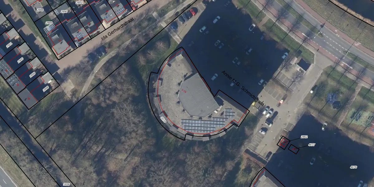 Het perceel waarop Annie M.G. Schmidtstraat 3 staat heeft een oppervlakte van 1490 m². Dit is een zeer groot perceel. De perceeloppervlakte wordt geregistreerd door het Kadaster. Gedetailleerde informatie over de maten van dit perceel kunt u vinden in het rapport Kadastrale kaart met maatvoering van Annie M.G. Schmidtstraat 3.
