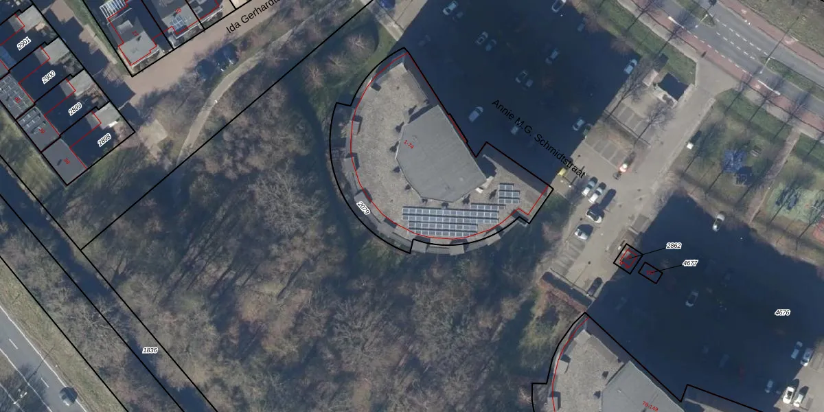 Het perceel waarop Annie M.G. Schmidtstraat 39 staat heeft een oppervlakte van 1490 m². Dit is een zeer groot perceel. De perceeloppervlakte wordt geregistreerd door het Kadaster. Gedetailleerde informatie over de maten van dit perceel kunt u vinden in het rapport Kadastrale kaart met maatvoering van Annie M.G. Schmidtstraat 39.