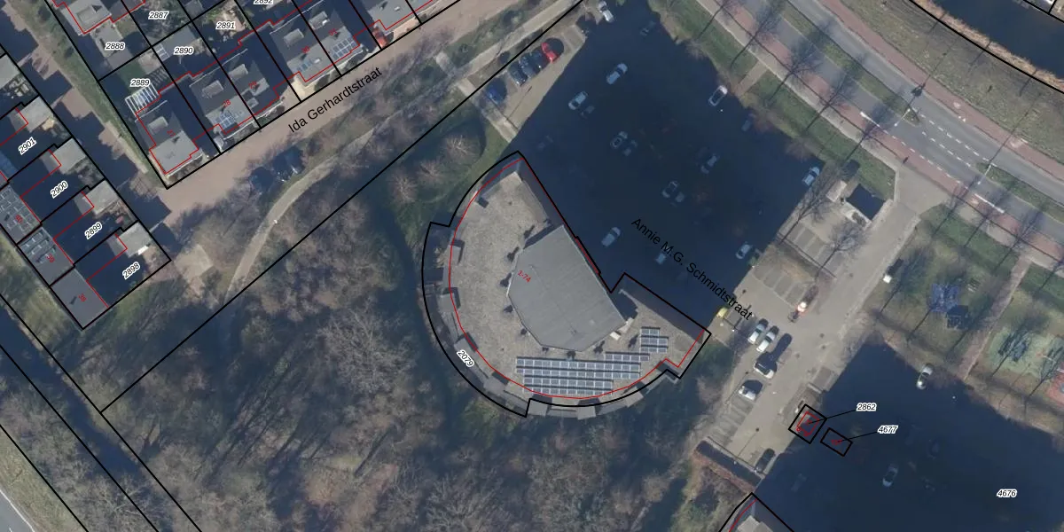 Het perceel waarop Annie M.G. Schmidtstraat 4 staat heeft een oppervlakte van 1490 m². Dit is een zeer groot perceel. De perceeloppervlakte wordt geregistreerd door het Kadaster. Gedetailleerde informatie over de maten van dit perceel kunt u vinden in het rapport Kadastrale kaart met maatvoering van Annie M.G. Schmidtstraat 4.