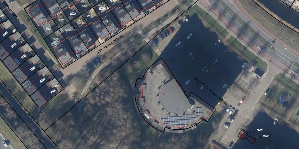 Het perceel waarop Annie M.G. Schmidtstraat 63 staat heeft een oppervlakte van 1490 m². Dit is een zeer groot perceel. De perceeloppervlakte wordt geregistreerd door het Kadaster. Gedetailleerde informatie over de maten van dit perceel kunt u vinden in het rapport Kadastrale kaart met maatvoering van Annie M.G. Schmidtstraat 63.