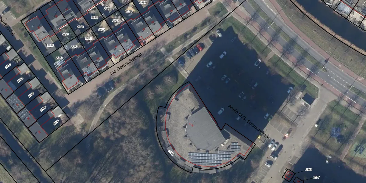 Annie M.G. Schmidtstraat 74 is gelegen op kadastraal perceel AMR01L2079. Deze kadastrale aanduiding is uniek en wordt gebruikt door het Kadaster om eigendomsrechten en andere zakelijke rechten vast te leggen. Het perceel maakt onderdeel uit van de kadastrale gemeente Alkmaar.