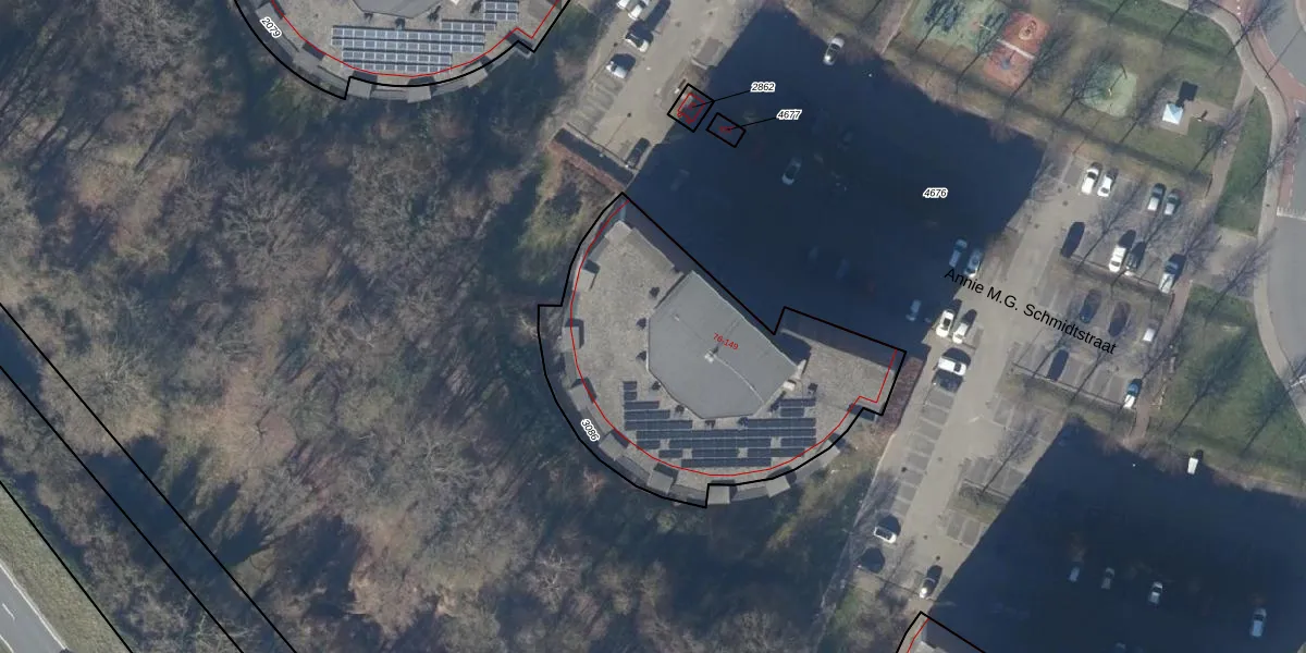 Het perceel waarop Annie M.G. Schmidtstraat 87 staat heeft een oppervlakte van 1479 m². Dit is een zeer groot perceel. De perceeloppervlakte wordt geregistreerd door het Kadaster. Gedetailleerde informatie over de maten van dit perceel kunt u vinden in het rapport Kadastrale kaart met maatvoering van Annie M.G. Schmidtstraat 87.