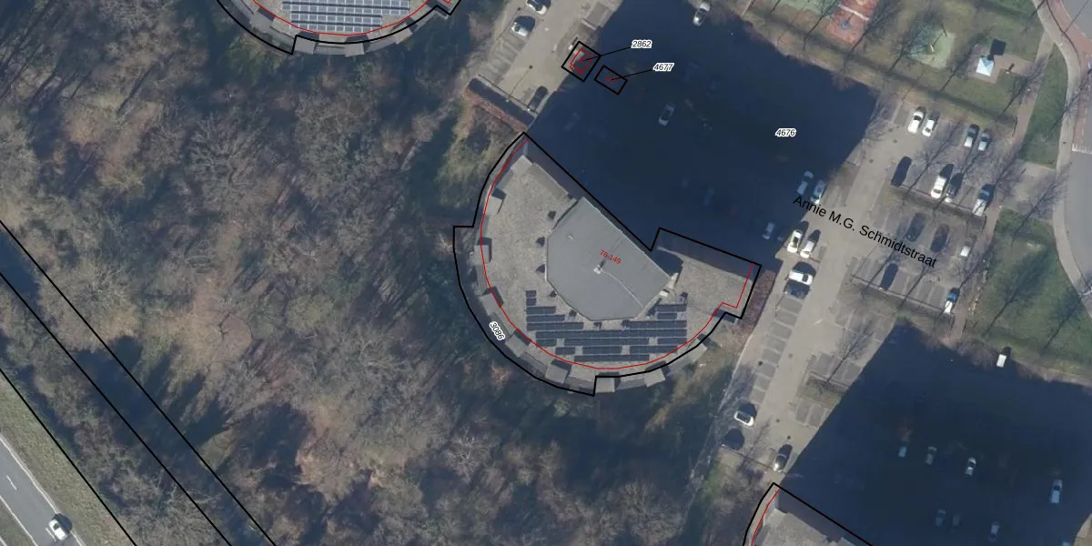 Het perceel waarop Annie M.G. Schmidtstraat 96 staat heeft een oppervlakte van 1479 m². Dit is een zeer groot perceel. De perceeloppervlakte wordt geregistreerd door het Kadaster. Gedetailleerde informatie over de maten van dit perceel kunt u vinden in het rapport Kadastrale kaart met maatvoering van Annie M.G. Schmidtstraat 96.